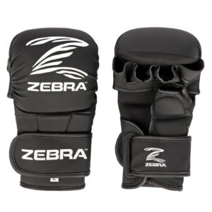 Zebra Performance Series MMA Gloves are here to take your mixed martial arts training to the next level. Made from premium outer materials and molded foam, these MMA training gloves feature extra padding designed to absorb the shock of repeated strikes while sparring and during extensive heavy bag and focus mitt training! The pre-curved molded foam at the interior of these MMA training gloves is the secret behind Zebra’s “Easy Fist System”, which enables a fighter to strike with maximum impact while exerting minimal effort. Open fingers and thumbs also allow for maximum grip during grappling exercises. Zebra MMA Performance Sparring Gloves are the only training gloves you’ll need to maximize your MMA performance!